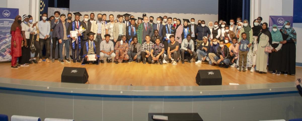 Rektör Yardımcısı Prof. Dr. Aydın Him ise, 10 uluslararası öğrencimizi mezun ettiğimizi kaydederek, “Sayı az gibi görünebilir ama sizlerin arkanızdan gelecek öğrenciler çok daha farklı olacak. Şu an 81 ülkeden 1500'e yakın öğrencimiz oldu. Önümüzdeki yıllarda yapacağımız mezuniyet programlarında muhtemelen öğrencilerimiz bu salona sığmayacak. Mezun olan öğrencilerimize başarılar diliyorum. Umarım güzel hatıralarla ülkemizden ayrılacaklar. Gittikleri yerlerde ülkemizi ve bizleri en iyi şekilde temsil edecekler. Burada kurdukları bağlantıları devam ettirecekler. Üniversitemizle olan ilişkilerini devam ettirecekler. Bizim mezunlarımız olarak da artık, mezun sistemimize kayıt olmanızı bekliyoruz. İrtibatı koparmayıp sürekli iletişim halinde olun. Türkiye'de kurduğunuz bu bağlantılar sizler için çok güzel hatıralar bırakacak, belki yeni yollar açacak. Bunların da kıymetini bilelim. Hepinize başarılar diliyorum.” diye konuştu.