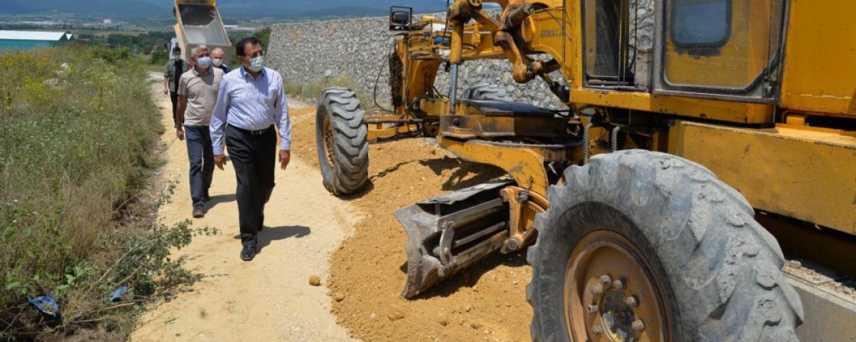 Bolu Valisi Ahmet Ümit, Akçakavak-Organize Sanayi, Akçakavak-Ahmetler Grup Yolu Bağlantısı Stabilize Bakımı Bölgesi gezisinin ardından Mesciler Köyü'nde devam eden alt yapı hizmetlerini yerinde gördü.