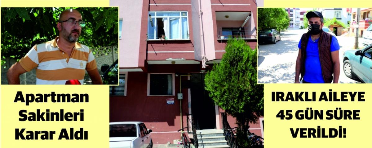 Sağlık Mahallesinde bulunan Değercan Apartmanın sakinleri, apartman toplantısında aldıkları kararla apartmanda bulunan Iraklı ailenin 45 günde evlerini boşaltmasını istedi. Apartman yönetimi tarafından alınan karar kamuoyunda ses getirdi.