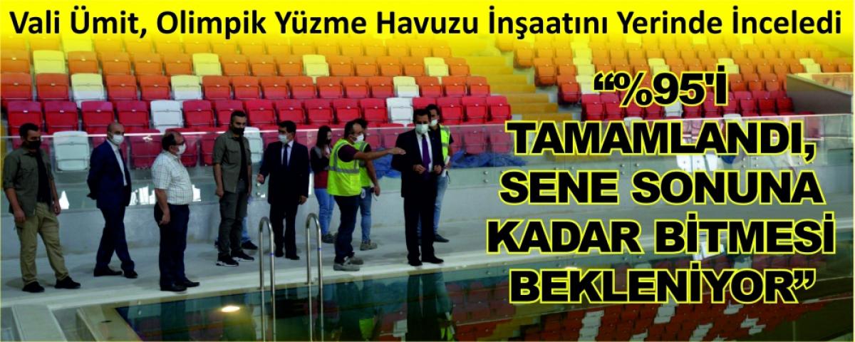Olimpik Yüzme Havuzu'nun % 95'inin tamamlandığını belirten Vali Ümit, "Sene sonuna kadar bitmesini beklediğimiz Olimpik yüzme havuzumuz, Bolulu gençlerimiz başta olmak üzere bölgemizin gençlerine hizmet verecek, yüzmeyi seven her yaştaki vatandaşımıza hitap edecektir" dedi.