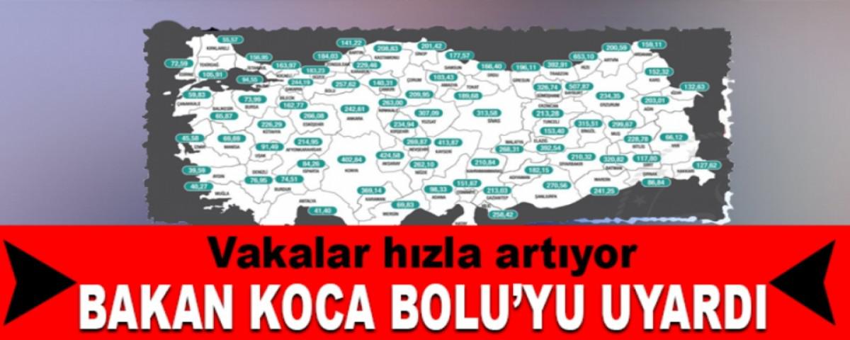 Sağlık Bakanı Fahrettin Koca illere göre haftalık vaka sayısının yer aldığı tabloyu açıkladı. Açıklanan verilere göre Bolu'da vaka sayısı 257,62 oldu. Vakaların hızla artmasının ardından Sağlık Bakanı Fahrettin Koca Bolu'yu uyardı. Haber: Adnan KARABULUT Koronavirüsle mücadele kapsamında ülke içinde tedbirlere ve aşılama çalışmalarına önem verilirken, Sağlık Bakanlığı tarafından da düzenli aralıklarla bilgilendirme yapılıyor. Sağlık Bakanı Fahrettin Koca, pandemiyle mücadelenin aralıksız devam etmesiyle birlikte, haftalık vaka sayılarını açıklamaya devam ediyor. 28 Ağustos ve 3 Eylül tarihleri arasındaki vaka sayılarını açıklayan Fahrettin Koca, en çok vaka artışı görülen illerin olduğu bir grafik de yayınladı. EN ÇOK VAKA RİZE'DE, EN ÇOK ARTIŞ KAYSERİ'DE İllere göre haftalık 100 binde vaka sayısı tablosunda en çok vakanın 653,10'la Rize'de olduğu görülürken, vaka sayısı en çok artan iller de sırasıyla Kayseri, Elazığ ve Karaman oldu. "NİHAİ ÇÖZÜM AŞI, KURALLAR ÇOK GEREKLİ" Konuya ilişkin açıklamalarını Twitter üzerinden yapan Bakan Fahrettin Koca: "28 Ağustos-3 Eylül arasında vaka yoğunluğu bir önceki haftaya göre en çok artan 10 ilimiz: Kayseri, Elazığ, Karaman, Bolu, Malatya, Kırşehir, Yozgat, Kırıkkale, Tunceli, Bartın! Bu illerden birindeyseniz şimdi daha da dikkatli olmalısınız. Nihai çözüm aşı! Kurallar çok gerekli" ifadelerini kullandı. BAKAN KOCA, BOLU'YU UYARDI Yaptığı açıklamayla vaka sayılarına dikkat çeken Bakan Koca, Kayseri, Elazığ, Karaman, Bolu, Malatya, Kırşehir, Yozgat, Kırıkkale, Tunceli ve Bartın olmak üzere 10 ile uyarıda bulundu