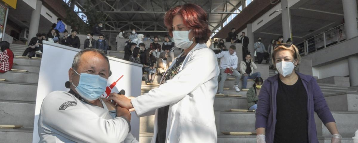 Pandemi kısıtlamalarını toplumsal olarak aşabilmek için henüz aşı olmamış veya eksik olan üniversite personel ve öğrencilerinin aşılarını olabilmesi için kurulan stantta, ülkemizde bulunan iki tür aşı da uygulanabiliyor. Randevu almaya gerek kalmadan sadece kimlik bilgileriyle, tercih edilen aşı yapılabiliyor. Öğrenci ve personellerin ilgi gösterdiği stant, hafta içi her gün 12:00 – 15:00 saatleri arasında hizmet veriyor. Elif Erdoğan