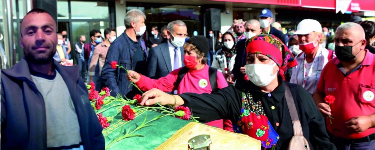 Mesai arkadaşları tabutuna karanfil bıraktı