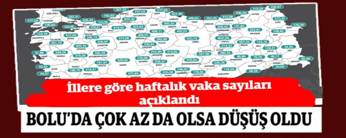 Açıklanan vaka sayılarına göre Bolu'da 2-8 Ekim arasında 415,50 olan vaka sayıları 9-15 Ekim arasında 410,42'ye düştü.