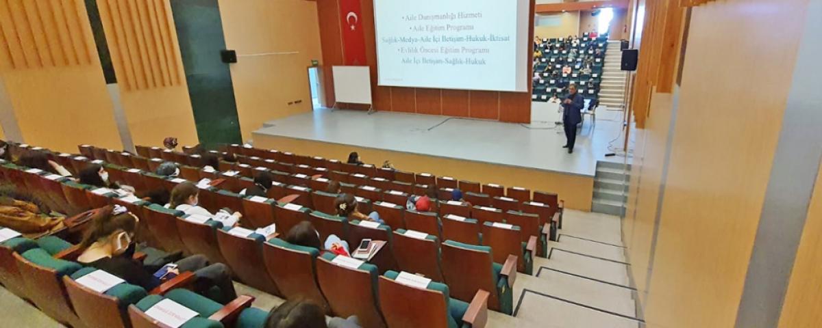 Aile ve Sosyal Hizmetler İl Müdür Yardımcıları Timuçin Eren ve Pınar Altok Erateş ile Psikolog Aslı Atıcı'nın konuk konuşmacı olduğu etkinlikte öğrencilere, toplumun refahını artırmaya yönelik çalışmalar yapan ve riskli gruplar öncelikli olmak üzere geniş bir yelpazede hizmet veren Aile ve Sosyal Hizmetler İl Müdürlüğü'nün çalışmaları tanıtıldı.