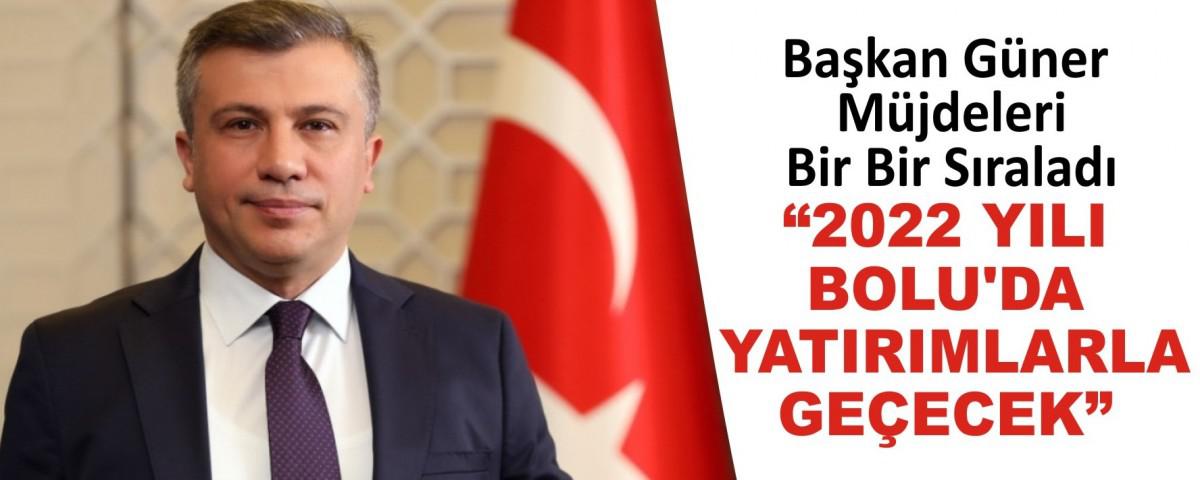 Başkan Güner, ildeki katı atıkların bertaraf edilmesi ile ilgili projenin hayata geçirilmesi noktasında büyük yol aldıklarına dikkat çekti. Güner, şöyle dedi;“AK Parti Bolu Heyeti olarak geçtiğimiz günlerce Çevre ve Şehircilik Bakanlığı'na bir ziyaret gerçekleştirmiş ve Sayın Bakanımız Murat Kurum ile bir araya gelmiştik. Bolu'nun 9 ilçesi, 3 beldesini ilgilendiren çok önemli konularda konuşma fırsatı bulduk. Söz konusu ilçe ve beldelere yatırım noktasına aldığımız hibeler ve destekler var. Bu destekleri en kısa vadede ilçelerimizde kullanacağız. Yine 80 milyonluk bir proje olan ve Bolu'nun tüm ilçelerini ilgilendiren katı atıkların bertaraf edilmesi ile ilgili Bolu İli Katı Atık ve Bertaraf Tesisleri Kurma ve İşletme Birliği (BEKAP'a müracaat etmiştik. Milletvekillerimizin de desteğiyle bu konuda hızlı bir yol aldık. Sayın Cumhurbaşkanımızın onayına sunduk. Bu proje de şehrimize kazandıracağımız en büyük katma değerlerden bir tanesi olacak. 2022 yılı inşallah kudretli iktidarımızın yönetiminde tüm Türkiye'de olduğu gibi Bolu'da da yatırımlarla geçecek” dedi.