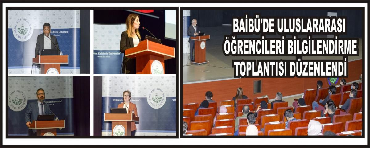 Üniversitemiz Kongre Merkezi Bordo Salonda düzenlenen bilgilendirme toplantısına, Rektör Prof. Dr. Mustafa Alişarlı, Rektör Yardımcısı Prof. Dr. Aydın Him, Bolu Valiliği İl Göç İdaresi Müdürü Derya Erdoğan ve müdürlük temsilcileri, Öğrenci Dekanı Prof. Dr. İbrahim Kürtül ve uluslararası öğrenciler katıldı. Saygı duruşu ve İstiklâl Marşı'nın okunmasıyla başlayan programda, Üniversitemizin tanıtım filmi gösterildi. Bilgilendirme toplantısı, Rektörümüz Prof. Dr. Mustafa Alişarlı'nın açılış konuşmasıyla başladı.