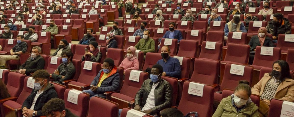 Üniversitemiz Öğrenci Dekanı Prof. Dr. İbrahim Kürtül ise, konuşmasına “Uluslararası öğrenci konusu, Türkiye Cumhuriyeti'nin özellikle son 10 yılına damga vurmuş bir meseledir. Çok değerli Cumhurbaşkanımızın, Türkiye Cumhuriyeti'nin gelişiminin, stratejik planının bir parçası olarak üniversitelerde uluslararasılaşmayı merkeze almasından sonra, özellikle son yıllarda Türkiye Cumhuriyeti bünyesinde yaklaşık 250-300 bin arasında uluslararası öğrenci eğitim-öğretim görmeye başlamıştır. Şu anda üniversitemizde 70'den fazla ülkeden gelen öğrencilerimiz var ve bu öğrenciler, bu ülkeler için de çok ciddi bir kazanım haline gelmiş durumda.” diyerek başladı.