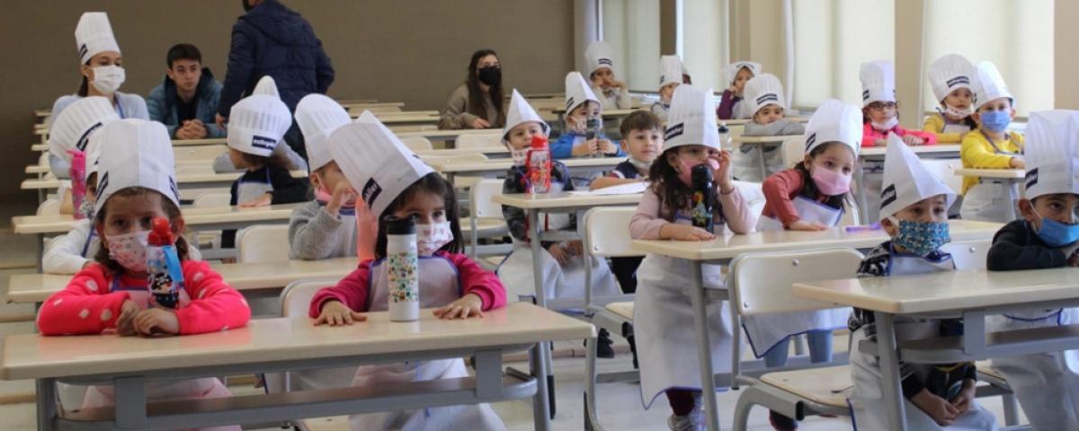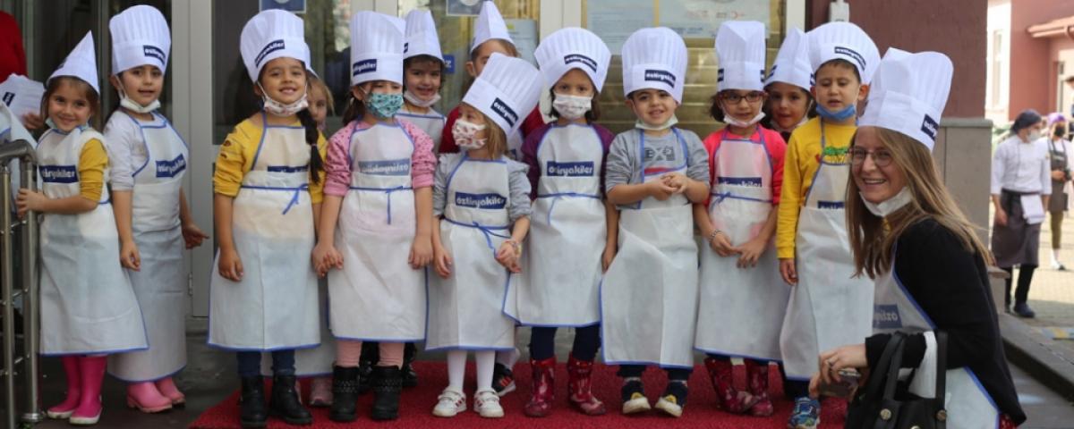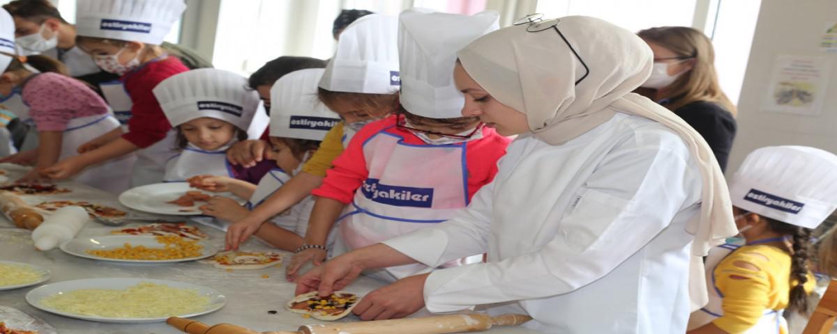 Çocukların eğlenerek öğrenmesi ve motor becerilerinin geliştirilmesi amacıyla, Mengen Meslek Yüksekokulu'nda, miniklere özel yemek pişirme etkinliği gerçekleştirildi. 4 ve 5 yaş grubundan 35 öğrenci, Gastronomi ve Mutfak Sanatları Bölümü ile Aşçılık Programından öğrencilerimiz Zeynep Aydemir, Burakhan Polat, Can Demir, Soyhan Yılmaz, Kemalcan Demircan ve Şenay Eker'le birlikte pizza yapıp yediler.