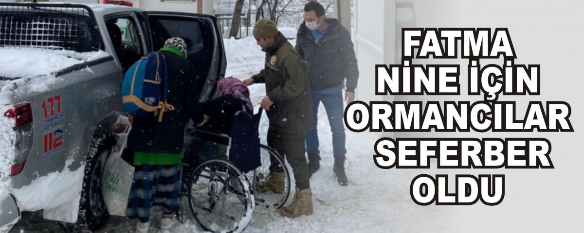 Hastanedeki tedavisinin ardından taburcu olan Fatma nineyi, yoğun kar yağışı nedeniyle yolu kapanan Karamürsel köyündeki evine ulaştırmak için orman işletme müdürlüğü personeli seferber oldu.