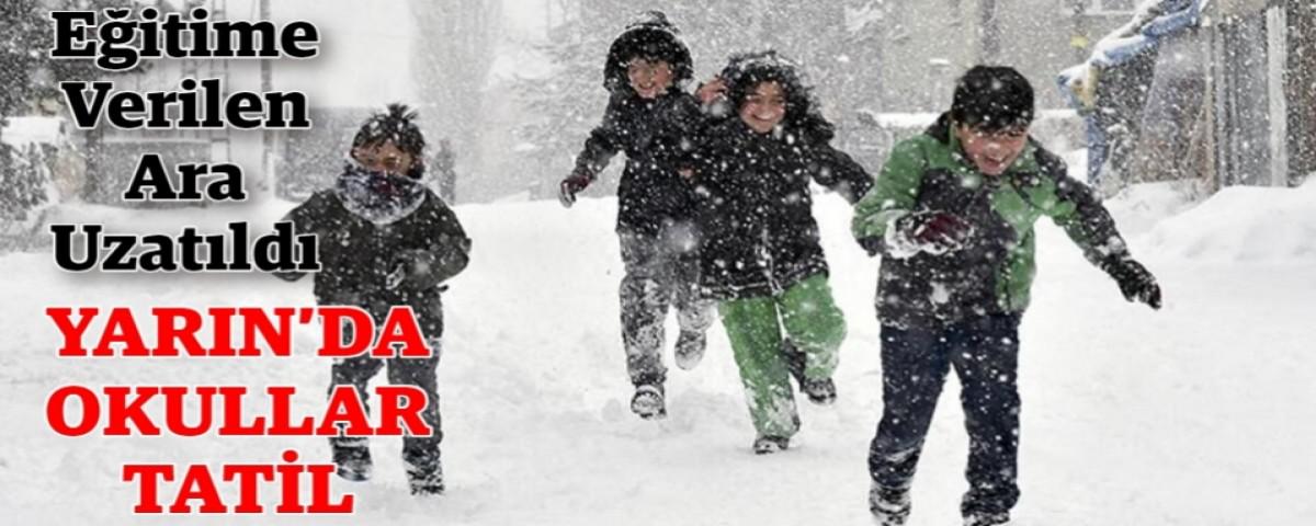 Bolu Valisi Ahmet Ümit, yoğun kar yağışı nedeniyle eğitime yarın da ara verildiğini bildirdi. Haber; Tunahan AKKOLOĞLU Bolu Valisi Ahmet Ümit, sosyal medya hesabından yaptığı paylaşımda, meteorolojik bilgilere göre yoğun kar yağışının devam etmesi beklendiğinden ve Aşırı buzlanma sebebiyle 21 Ocak'ta kent genelinde resmi ve özel okul öncesi, ilk, orta, lise, rehabilitasyon ve halk eğitim merkezi kurumlarındaki eğitim-öğretim faaliyetlerine bir gün ara verilmesinin kararlaştırıldığını belirtti. Vali Ümit, engelli ve hamile kamu çalışanlarının da aynı gün idari izinli sayılmasına karar verildiğini kaydetti.