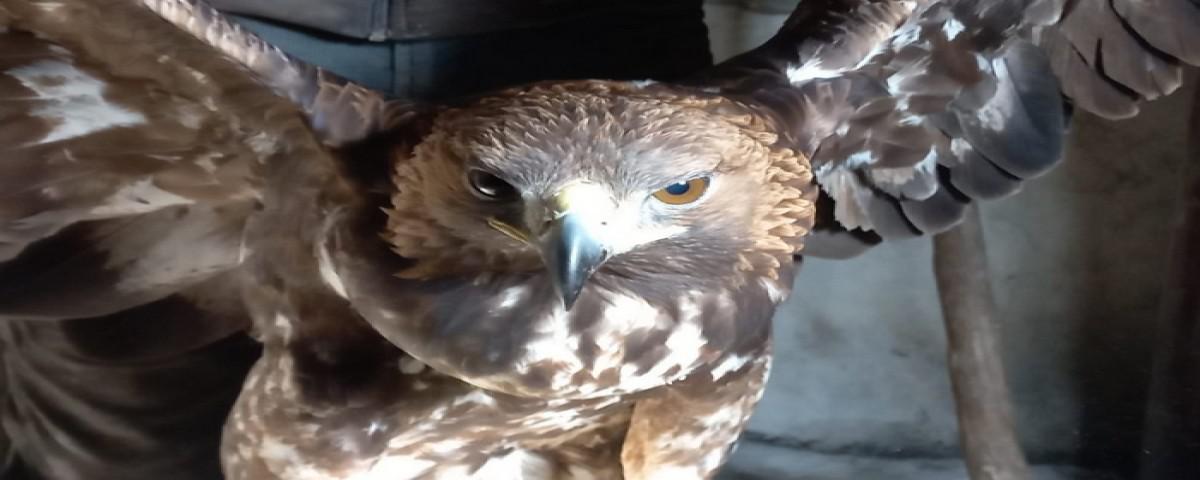 Kendisine ait tavuk kümesinin üstünde ayak sesleri duyduğunu ve kontrol ettiğinde uçmakta zorlanan yaralı bir kaya kartalı olduğunu söyleyen Nazmi Turan yaralı kartalı kanatlarından tutarak kendi samanlığında misafir ettiğini ve hayvanı o durumda bırakmaya kıyamadığını, bir süre tavuk etiyle beslediğini ifade etti.