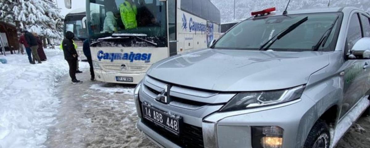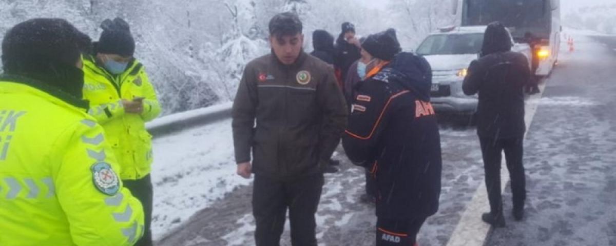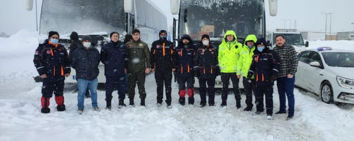 Ekipler, 3 arazi aracı ve 6 personel ile TEM Otoyolu ve D100 karayolu Bolu geçişinde 24 saat aralıksız araçlarında mahsur kalan vatandaşlara yardım için nöbet tutuyor.
