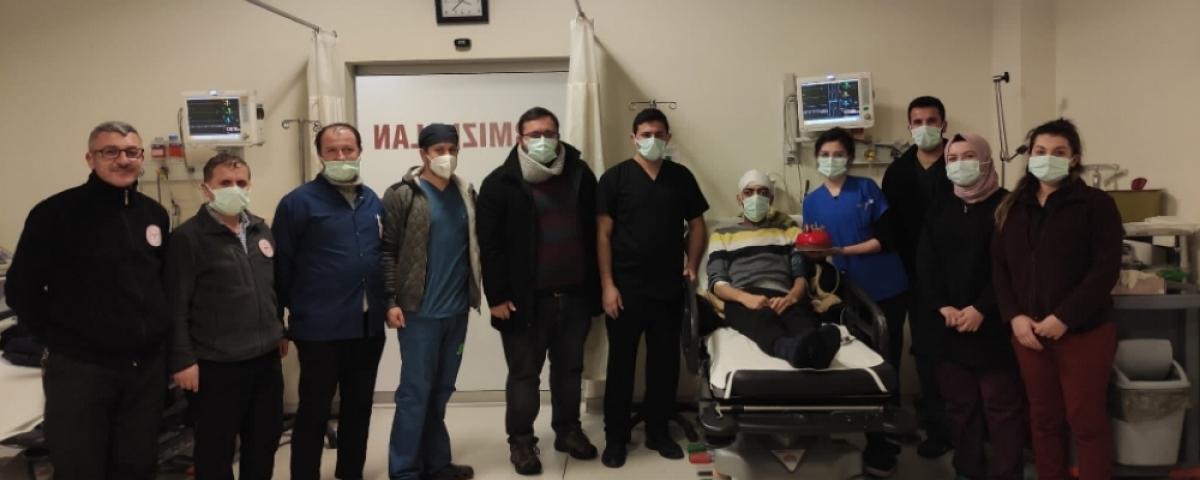 Genç hasta için düzenlenen doğum günü kutlamasına Gerede Devlet Hastanesi Acil Servisi doktorları, hemşireleri, çalışanları ve hastanın ailesi katıldı.