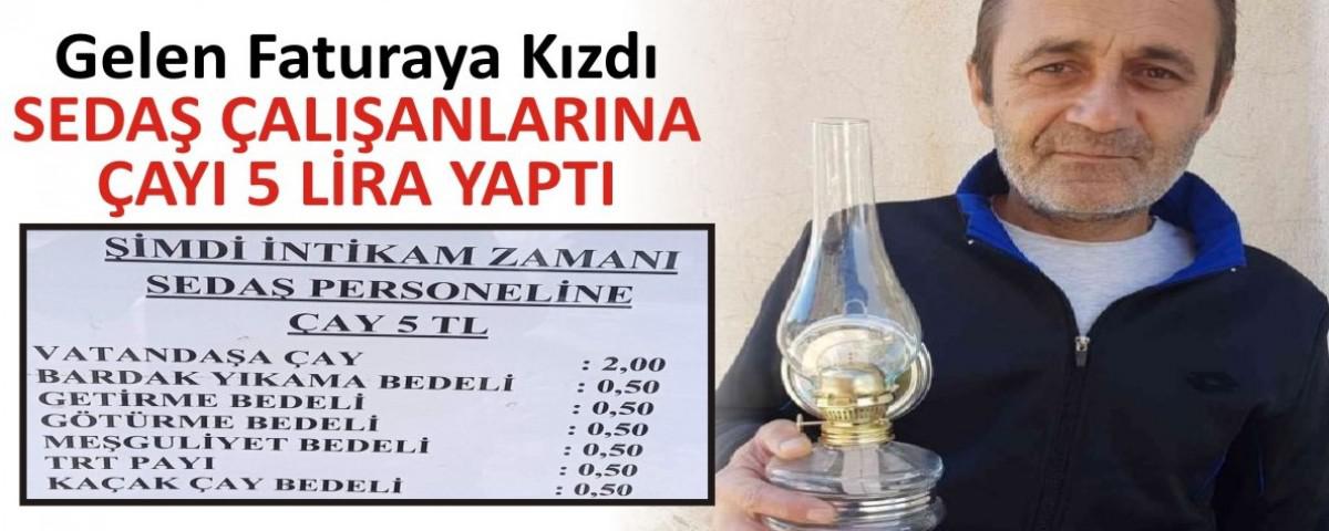 Mengen'de çay ocağı işleten Sefa Çıray, çay ocağına gelen elektrik faturasına kızıp SEDAŞ personeline çayı 5 liradan satma kararı aldı.