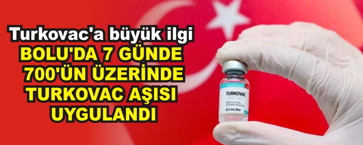Bir haftada yaklaşık 700'ün üzerinde kişinin Turkovac aşısı olduğu Bolu'da aşı tedarikinin sağlanması ile birlikte diğer hastanelerde ve evlerde uygulanması bekleniyor. Aşı oranının yüksek olduğu Bolu'da uygulanmaya başlanan Turkovac aşısı ile birlikte bu oranın daha da artması hedefleniyor.