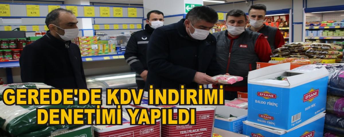 Cumhurbaşkanı Recep Tayyip Erdoğan'ın açıkladığı temel gıda maddelerinde yüzde 7 KDV indirimi uygulamasının yürürlüğe girmesiyle birlikte Gerede Belediyesi zabıta ekipleri marketlerde KDV denetimine başladı. Başkan Mustafa Allar ekiplerle birlikte marketlerdeki denetimlere katıldı. Raflarda etiket bulunup bulunmadığını inceleyen ekipler, satılan ürünlerin kasa fişlerini de kontrol edip, yüzde 7'lik KDV indiriminin uygulanıp, uygulanmadığını denetledi.