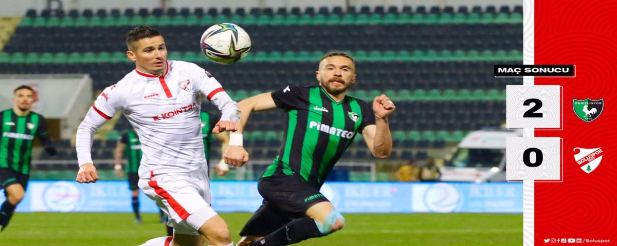 Karşılaşmanın sonuna 5 dakika süre ilave edildi. Maçta kalan dakikalarda başka gol olmayınca Boluspor deplasmanda Denizlispor'a 2-0 mağlup oldu. Kırmızı beyazlılar ikinci devrede ilk mağlubiyetini aldı.