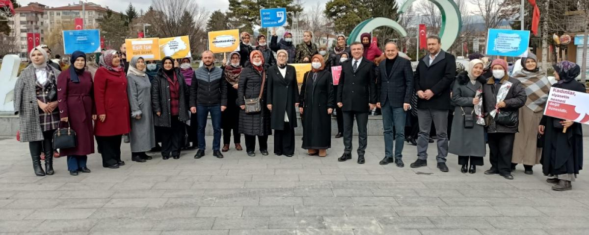 AK Parti Bolu Milletvekili Arzu Aydın, AK Parti Bolu İl Başkanı Suat Güner, AK Parti Bolu Kadın Kolları Başkanı Hicran Çağalı ve partililer, Kadınlar Günü kapsamında Kent Meydanı'nda bir araya gelerek, kadına yönelik şiddete karşı ve kadının güçlendirilmesine yönelik pek çok düzenleme yaptıklarından bahsettiler. Tüm kadınların ne kadar emektar olduğuna vurgu yapılan açıklamada, omuz omuza Büyük Türkiye'yi inşa edeceklerine inançlarının tam olduğu söylediler.