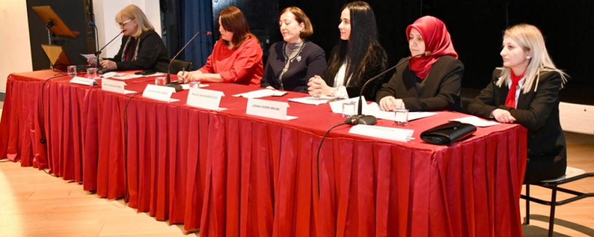 Saygı duruşu ve İstiklal Marşı'nın okunmasıyla başlayan panelin açılış konuşmasını yapan Kadın, Aile ve Toplum Hizmetleri Uygulama ve Araştırma Merkezi Müdürü Doç. Dr. Hikmet Yağlı Mavil, “İnsanoğlu, kendi iradesiyle eylemlerini seçebilen bir varlıktır. Ancak insanoğlu, doğuştan cinsiyetini seçme hakkına sahip değildir. Bu sebeple erkek ya da kadın olarak doğmuş olmak, birini diğerine üstün olma hakkı vermez. Bizler, kadın ve erkeğin bir bütünün iki eşit yarısı olduğuna inanan bir gelenekten geliyoruz. Yüce yaratıcı, kadın ve erkeği aynı yaratılış gayesi ile yaratmış, yeryüzünü birlikte imar ve inşa etmek için var etmiş, kadın ve erkeği yeryüzünde halifesi kılmıştır.” dedi.