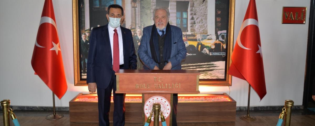 Türk Tarih Kurumu Şeref Üyesi Tarihçi Yazar Prof. Dr. İlber Ortaylı, Bolu Valisi Ahmet Ümit'i ziyaret etti. Ünlü siyaset bilimci ve tarihçi İlber Ortaylı, Valilik ziyaretinde Şeref Defterini imzaladıktan sonra Vali Ümit ile birlikte Valilik makamında sohbet ettiler.