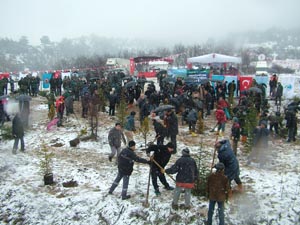 Ağaçlandırma seferberliği kapsamında Bolu`da Ankara-İstanbul Tem otoyolu güzergâhında ağaçlandırma çalışmaları kar yağışı altında yapıldı. Tören, kar yağışı altında yapılınca katılımcıların üşüdüğü görüldü. Fidan dikimine katılan bazı işçiler, soğuk havada üşümemek için ateş yaktı.