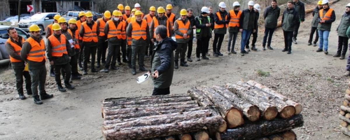 Katılımcılara eğitim üç aşamalı olarak gerçekleştirilen eğitimin ilk aşaması İşletme Müdürlüğü toplantı salonunda teorik bilgiler olarak gerçekleşti. Eğitimin ikinci aşamasında ise Mudurnu Orman İşletme Şefliği 103 Nolu bakım bölmesinde, 6331 sayılı iş kanununa göre uyulması gereken hususlar, ağaçların nasıl boylanacağı ve değerlendirileceği ile ilgili bilgiler katılımcılara uygulamalı olarak gösterildi. Uygulamada karşılaşılan sorunların katılımcılar tarafından dile getirilip karşılıklı olarak değerlendirilmesinin ardından eğitimin ikinci kısmı tamamlandı.