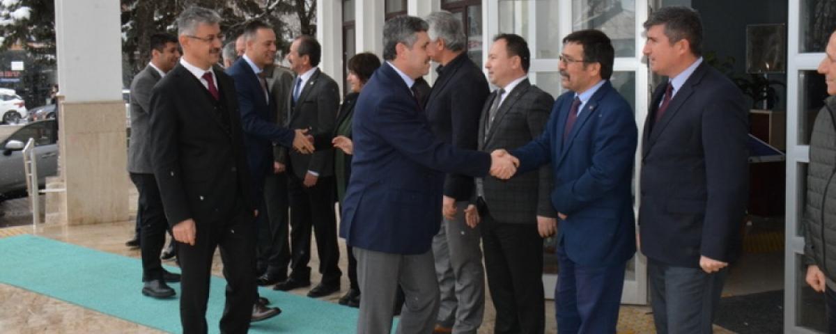 Bölge Müdürü Mahmut Şentürk'e hayırlı olsun ziyaretinde bulunan Genel Müdür Yardımcısı Hayati Özgür'e İzin ve İrtifak Dairesi Başkanı Ahmet Köle ve Maden İşleri Şube Müdürü Bülent Kayar eşlik etti.