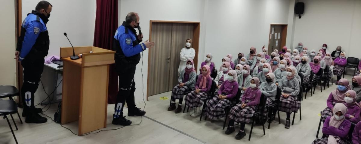 Daha sonra hem kız hem erkek öğrencilere, Toplum Destekli Polislik tanıtımı, Güvenli İnternet Kullanımı ve Bilişim Suçları konularında bilgilendirme yapılarak ‘Sanal Dünyada Güvende miyiz?, İnternet ve Çocuk" Konu başlığı ile 1204 adet broşür dağıtımı yapılarak 5 adet ‘'İnternet Güvenliği‘' konulu afiş asılarak bilgilendirme faaliyeti gerçekleştirildi.