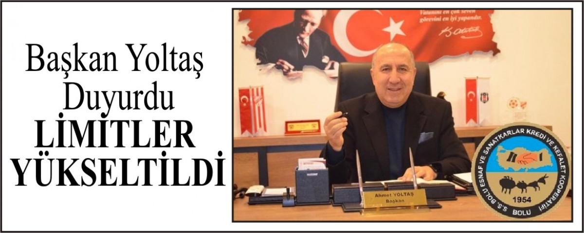 Bolu Esnaf ve Sanatkârlar Kredi ve Kefalet Kooperatifi başkanı Ahmet Yoltaş, yatırım kredi limitlerinin 500 binden 1 milyona yükseltildiğini duyurdu.