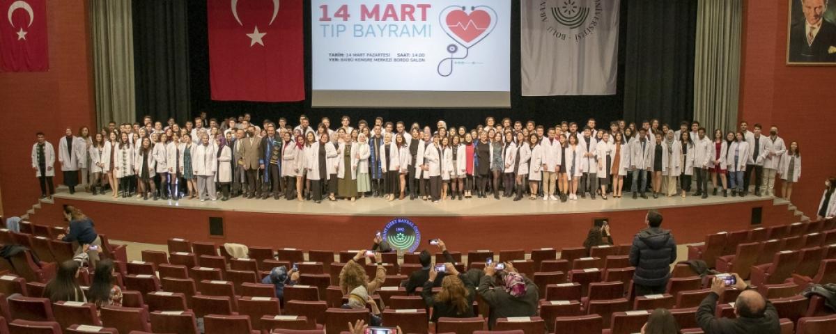 Dünyanın en eski mesleklerinden birinin hekimlik olduğunu belirten Özcan, “Çünkü dünya var olduğundan beri her zaman hasta ve hastalık olmuştur. Buna derman arayan birileri de olmuştur. Modern Tıp eğitimine geçmeden önce de, çok sayıda hekimimiz dünyada ismini duyurmuş. Türkiye'de iyi bir tıp eğitimi alındığını, yurt dışında bizatihi Türk doktorlarına verilen değerden ve önemden gördüm. Gerçekten Türkiye'de Tıp Fakültesi okumuşsanız, dünyanın her yerinde iş bulabiliyorsunuz. Dünyada önemli doktorlar çıkıyor; bunun da kökeni Türkiye'de aldıkları Tıp eğitimi. En son Biontech aşısını bulan da iki Türk doktorumuzdu. Dolayısıyla sizlerin arasından da ben, nice cevherler çıkacağını düşünüyorum; böyle olacağını biliyorum.” diye konuştu. Bolu Valisi Ahmet Ümit'in törene gönderdiği 14 Mart Tıp Bayramı tebrik mesajı okundu.