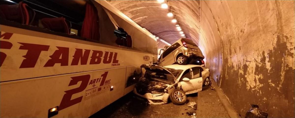 Bolu Dağı Tüneli'nde meydana gelen zincirleme trafik kazası nedeniyle Anadolu Otoyolu'nun İstanbul yönüne ulaşım sağlanamıyor. Bolu Dağı Tüneli'nin içinde aralarında tır, kamyon ve otobüsün de olduğu çok sayıda aracın karıştığı zincirleme trafik kazası meydana geldi.
