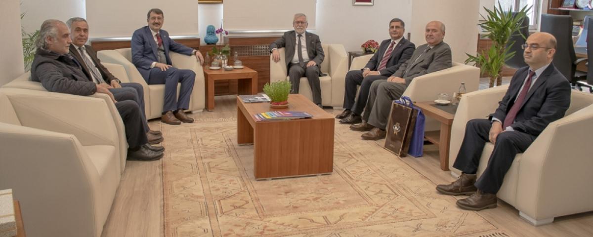 İbn Haldun Üniversitesi Rektörü Prof. Dr. Atilla Arkan, Genel Sekreter Sebahattin Belik ile birlikte, Rektörümüz Prof. Dr. Mustafa Alişarlı'yı ziyaret etti.
