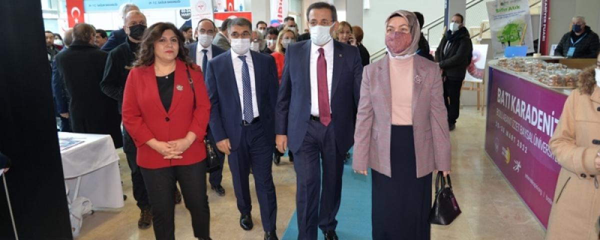 Bolu Valisi Ahmet Ümit ile eşi Şengül Ümit Hanımefendi, Ulaştırma ve Alt Yapı Bakanlığı Bakan Yardımcısı Selim Dursun, Karabük Valisi Fuat Gürel ve eşi, Bolu Milletvekili Fehmi Küpçü, BAİBÜ Rektörü Prof. Dr. Mustafa Alişarlı ve beraberindekiler, resmi kurum ve kuruluşlar ile savunma sanayii, teknoloji, gıda, turizm, otomotiv, tekstil, hizmet sektörü gibi alanlarda önde gelen bölgemizde ve ilimizde faaliyet gösteren özel sektör şirket ve firmalarının Fuar alanında açtıkları stantları gezerek bilgiler aldılar.