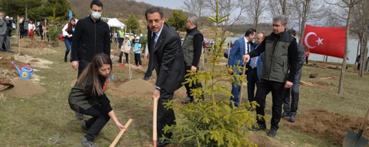 Fidan Dikim Töreni, Bolu Valisi Ahmet Ümit ve katılımcıların fidan dikmesi ve fidanlara can suyu vermesinin ardından sona erdi. Elif Erdoğan