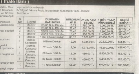 İHALE ÇIKAN DÜKKANLARIN FİYATLARI