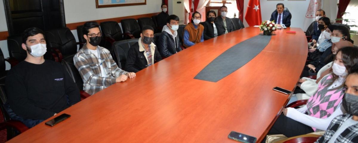 Öğrencilerle tanışarak dil, tarih, kültür ve medeniyet üzerine sohbet eden Vali Ahmet Ümit, farklı ülkelerden gelen öğrencileri misafir etmekten duyduğu mutluluğu ifade etti. TÖMER Öğretim Görevlileri Umut Erdoğan ve Oğuzhan Yıldırım eşliğinde gerçekleşen ziyarete 20 farklı ülkeden 25 uluslararası öğrenci katıldı. Vali Ahmet Ümit, ziyarette yaptığı konuşmasında, "Sizler bizim gönül coğrafyamızın gençlerisiniz. Asırlarca birlik, beraberlik içerisinde tasada ve kıvançta birlikte olduk. Türkiye'nin en iyi üniversitelerinden birindesiniz. Burada aldığınız yüksek eğitimle ülkelerinize döndüğünüzde önemli hizmetlerde bulunacaksınız" dedi.