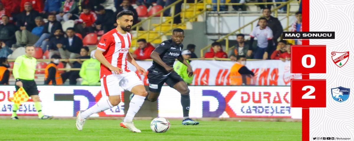Boluspor maçın 36.dakikasında gole çok yaklaştı. Bregu'nun ara pasında kaleci ile karşı karşıya kalan Arda Köksal'ın vuruşu üstten auta çıktı. Kırmızı beyazlılar bu dakikada mutlak bir pozisyondan faydalanamadı.