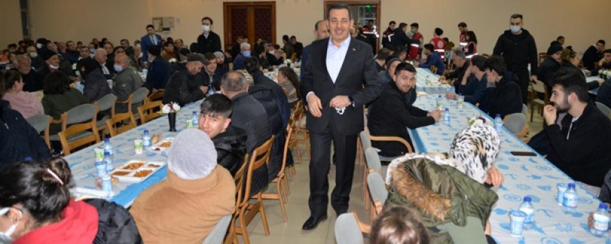 Günlük 1500 vatandaşımıza 5 çeşit iftar yemeğini restaurant kalitesinde sunmak için emek veren, toplu yemeğe gelemeyen/evinde yemek yapamayacak durumda olan vatandaşlarımızın da evlerine iftar/sahur yemeği veya gıda paketlerini kesintisiz bir şekilde ulaştıran bu önemli hizmetin kahramanı olan Kızılay'a, İş insanlarımıza, salonda veya sahada hizmetleri sunan çalışanlarımıza, tüm yardımseverlerimize, gönüllülerimize ve teşrifleriyle bu sofraları bereketlendirerek bizi mutlu eden tüm misafirlerimize gönülden teşekkür ederim" dedi.