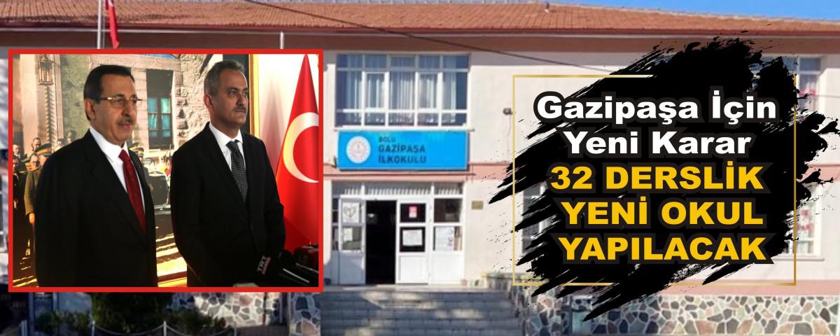 Milli Eğitim Bakanı Mahmut Özer, Bolu Valiliği ve Belediye arasında krize neden olan Karaçayır mahallesindeki Gazipaşa ilkokulunun yerine 32 derslikli okul yapılacağı açıklandı.