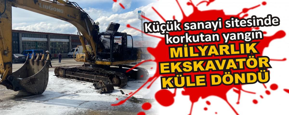 Küçük sanayi sitesinde çıkan yangında tamir için getirilen milyarlık paletli ekskavatör küle döndü. Kısa sürede alev topuna dönen ekskavatör itfaiye ekipleri tarafından uzun uğraşlar sonucu hiçbir yere sıçramadan söndürüldü.