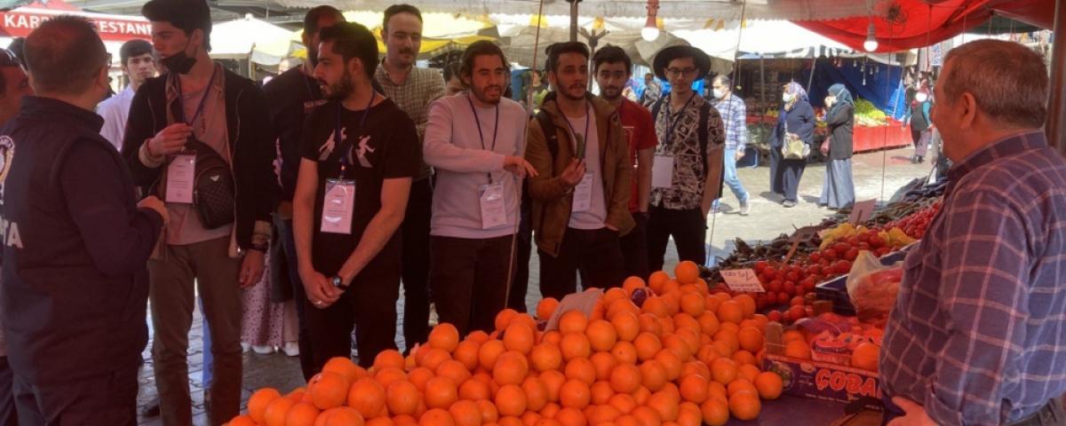 Bolu Abat İzzet Baysal Üniversitesi Türkçe Öğretimi Uygulama ve Araştırma Merkezi'nden (TÖMER) 21 uluslararası öğrenci, Bolu Manavlar ve Pazarcılar Esnaf Odası Başkanı Mustafa Altındal'ın desteğiyle gerçekleştirilen ‘Pazar Ola' etkinliğine katıldı.