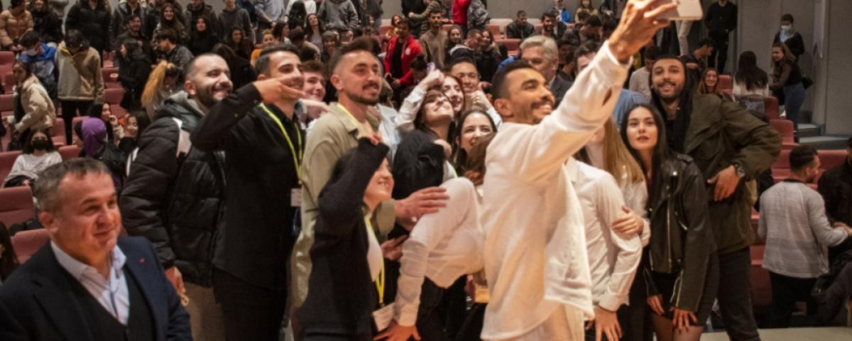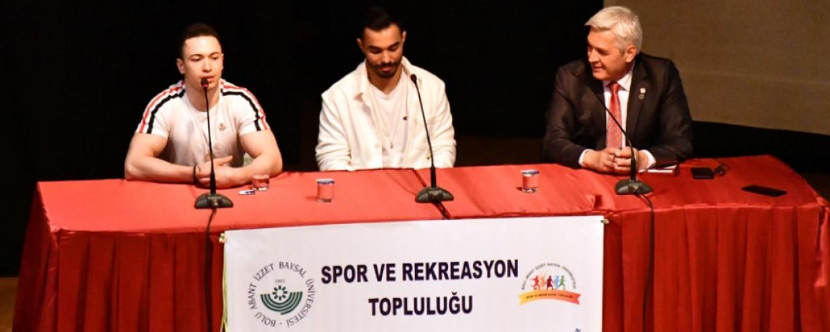 Etkinlikte saygı duruşu ve İstiklal Marşı'nın ardından söyleşi kısmına geçildi. Moderatör Hasan Birol Yalçın olimpik jimnastik sporcular Ferhat Arıcan ve Ahmet Önder'e merak edilen sorular sordu. Arıcan ve Önder soruları içtenlikle yanıtladı. Arıcan ve Önder sporda disiplinin çok önemli olduğunu ve başarı elde etmek için çok çalışmak gerektiğinin altını çizdi. Söyleşi kısmının ardından soru cevap kısmına geçildi. Soru cevap kısmında Rektör Prof. Dr. Mustafa Alişarlı, Ferhat Arıcan'a yönelik 2020 olimpiyatlarında performansını sergiledikten sonra henüz puanlar açıklanmadan kendinden emin bir şekilde “işte bu!, işte bu!” demesinin anlamını sordu. Arıcan kendisinden sonra yarışacak olan en büyük rakibi Çinli sporcuyu etkilemek için o şekilde davrandığını belirtmesi üzerine salon tarafından alkışlandı.