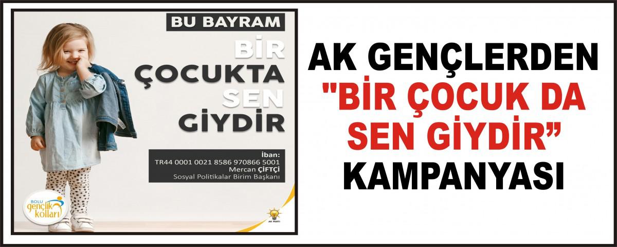 AK Parti Bolu İl Gençlik Kolları Başkanı Fatih Bayrak yaptığı açıklamada, bayram öncesi çocukların yüzünü güldürmek adına, "Bir Çocuk da Sen Giydir Kampanyası" başlattıklarını bildirdi. Kampanya kapsamında yoksul ve ihtiyaç sahibi çocuklara kıyafet yardımında bulunulacağını belirten Bayrak, kampanyayı Ramazan ayının paylaşma, yardımlaşma ayı olması ve kimsenin boynunun bükük kalmaması temennisiyle başlattıklarını söyledi.