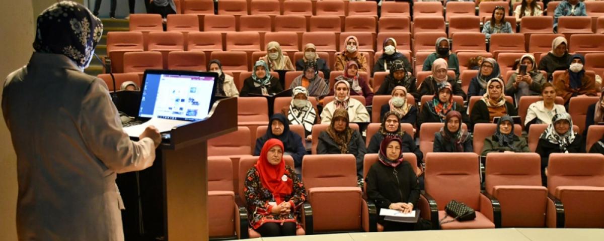 Sağlık Bilimleri Fakültesi Beslenme ve Diyetetik Bölüm Başkanı Prof. Dr. Muhittin Tayfur ise, “Hangi Diyet? Sağlıklı Beslenme Önerileri” başlıklı sunum yaptı. Yaş, cinsiyet, sağlık ve fiziksel aktiviteye uygun şekilde, besin öğelerini yeterli ve dengeli almanın ve yaşamımız boyunca bu beslenmeyi alışkanlık haline getirmenin önemine değinen Prof. Dr. Tayfur, “Besin miktarları ve türleri çok önemli. Yağlar, proteinler, karbonhidratları uygun miktar ve oranlarda almak gerekiyor. Eğer bunu bu şekilde sağlayamazsak, ne yazık ki kısa, orta ve uzun dönemde sağlık sorunlarıyla karşılaşırız. Sağlıklı, verimli ve üretken olabilmemiz için bunları dengeli biçimde almamız gerekiyor.” dedi.