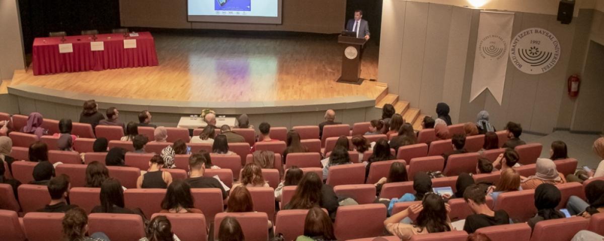 Üniversitemizde İzzet Baysal Kültür Merkezi Pembe Salonda düzenlenen söyleşiye; Rektör Yardımcısı Prof. Dr. Aydın Him, Bolu İl Sağlık Müdür Yardımcısı Dr. Ünal Barutçu, akademisyenler, sağlık çalışanları ve öğrenciler katıldı.