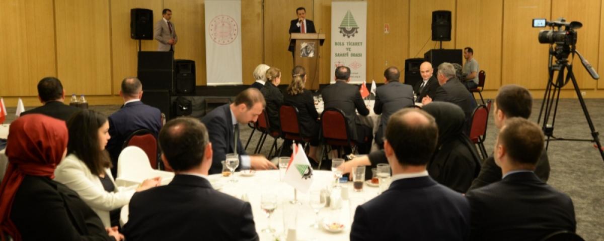 Bolu Vali Yardımcısı İlhan Turgut ve BTSO Başkanı Türker Ateş tarafından Vali Ümit ve eşine hediye takdiminde bulunuldu.