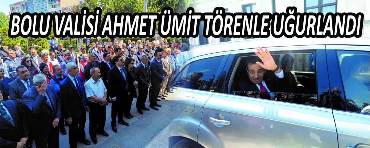 Bolu Valisi Ahmet Ümit, geçtiğimiz günlerde açıklanan valiler kararnamesi ile merkeze alındı. Bolu'daki görevi sona eren Vali Ümit, için valilik binası önünde veda töreni düzenlendi. Sabah saatlerinde makamında veda ziyaretlerini kabul eden Vali Ümit, daha sonra eşi Şengül Ümit ile birlikte valilik çalışanları ile vedalaşarak törenin yapılacağı alana geldi. Törene, daire müdürleri, sivil toplum kuruluşları ile siyasi partilerin temsilcileri ile gaziler katıldı.