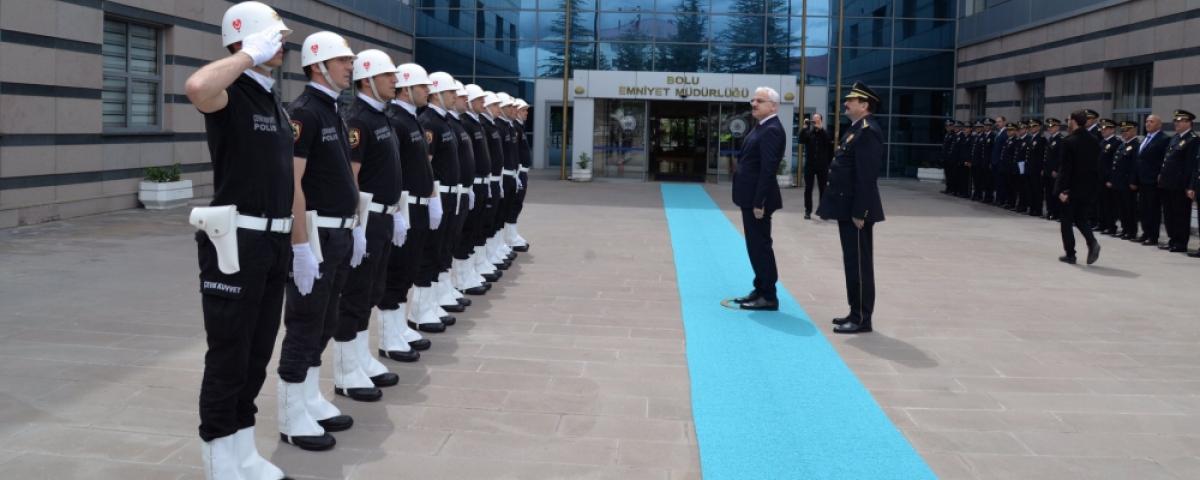 İl Göç İdaresi Müdürlüğünü ziyaretinden sonra İl Emniyet Müdürlüğü'nü ziyaret ederek Şube Müdürleri ile bir araya gelen Bolu Valisi Erkan Kılıç, vatandaşlarımızın huzur ve güvenliği için yürütülen çalışmalar hakkında İl Emniyet Müdürü Aksoy'dan brifing aldı. Vali Kılıç, güvenlik güçlerine çalışmalarında üstün başarılar diledi.