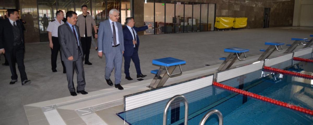 Yüzme havuzunda incelemelerde bulunan Vali Kılıç, yüzme havuzu ve Bolu'da yürütülen spor çalışmaları hakkında Gençlik ve Spor İl Müdürü Şerafettin Çilkara'dan bilgiler aldı.